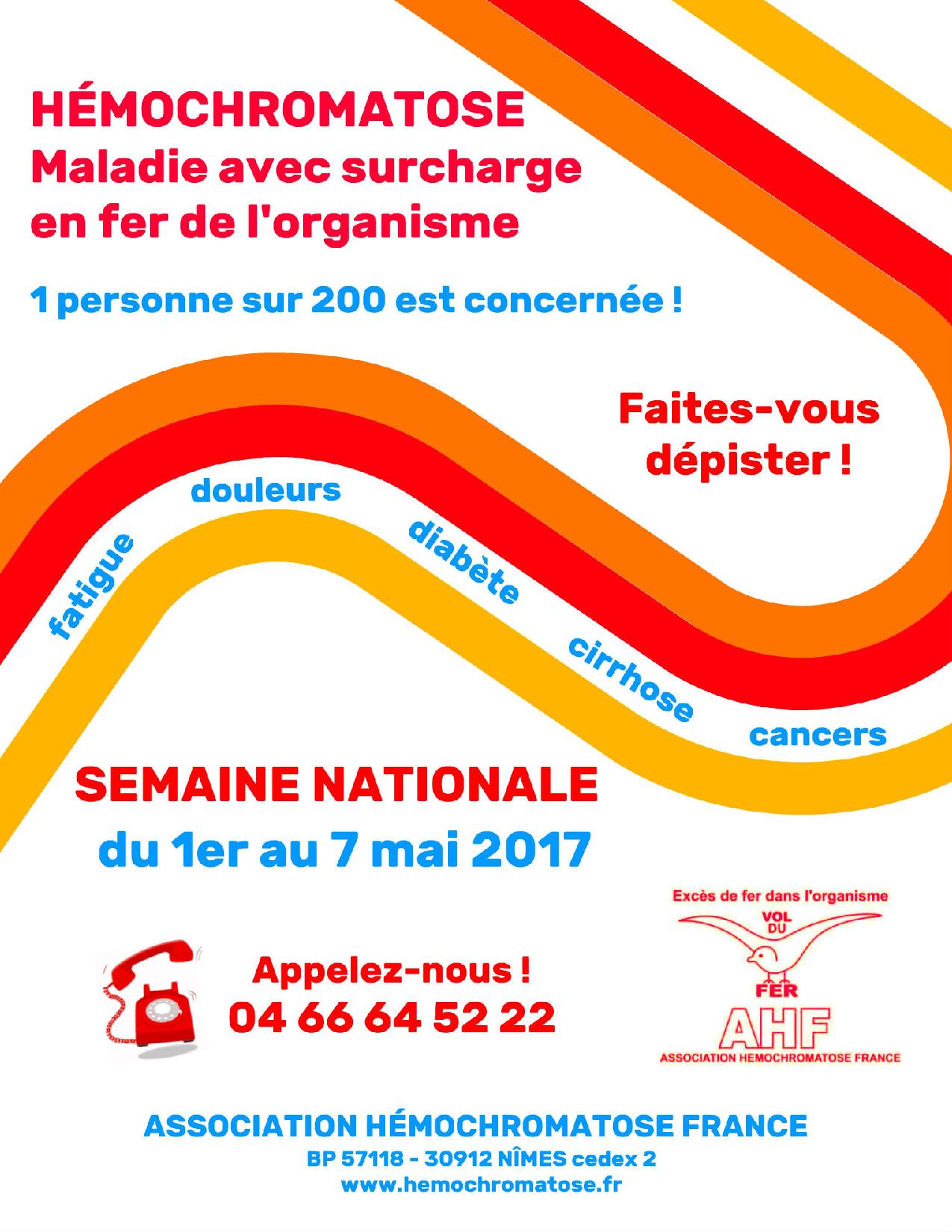 Semaine Nationale de sensibilisation au dépistage de l'hémochromatose du 1er au 7 mai 2017.